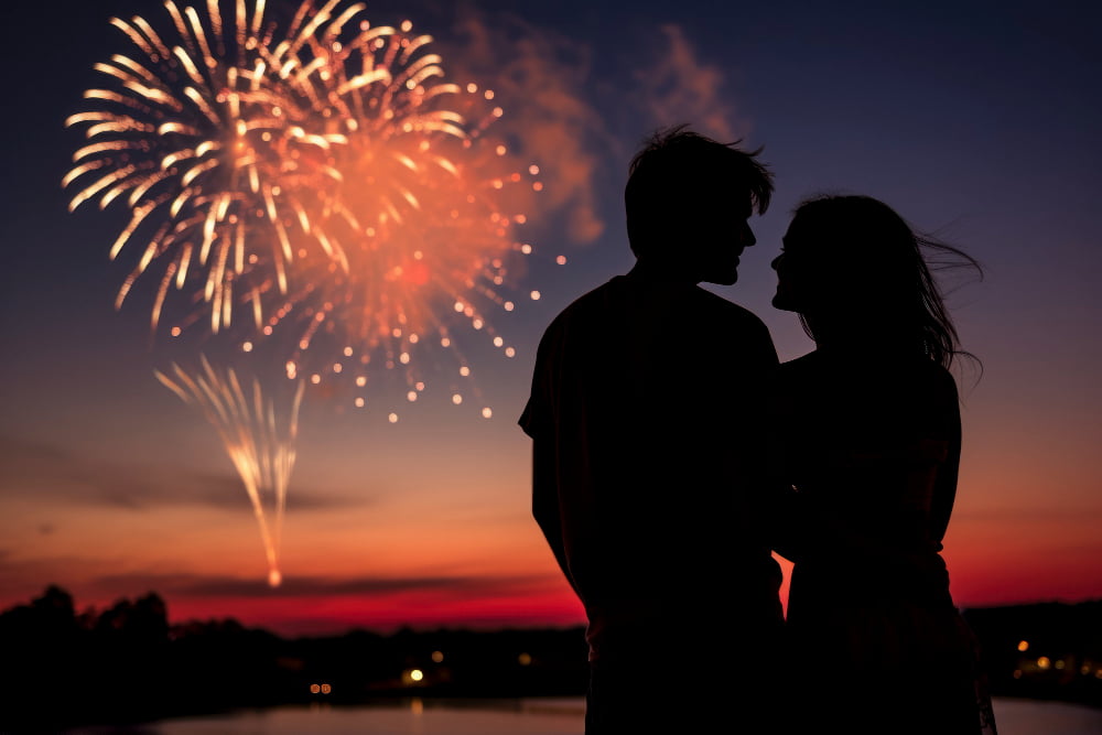 Fotografia cu expunere lungă este o tehnică prin care fotograful poate crea efecte vizuale spectaculoase, înregistrând mișcarea luminii într-un cadru static. Utilizarea artificiilor sau a lumânărilor pentru a scrie mesaje, a desena inimi sau a crea cadre etereal, luminoase în jurul mirilor, adaugă o dimensiune magică și onirică fotografiilor de nuntă. Această abordare nu doar că impresionează vizual, dar implică activ și oaspeții în crearea unor momente unice, transformând fotografiile de nuntă în adevărate opere de artă.