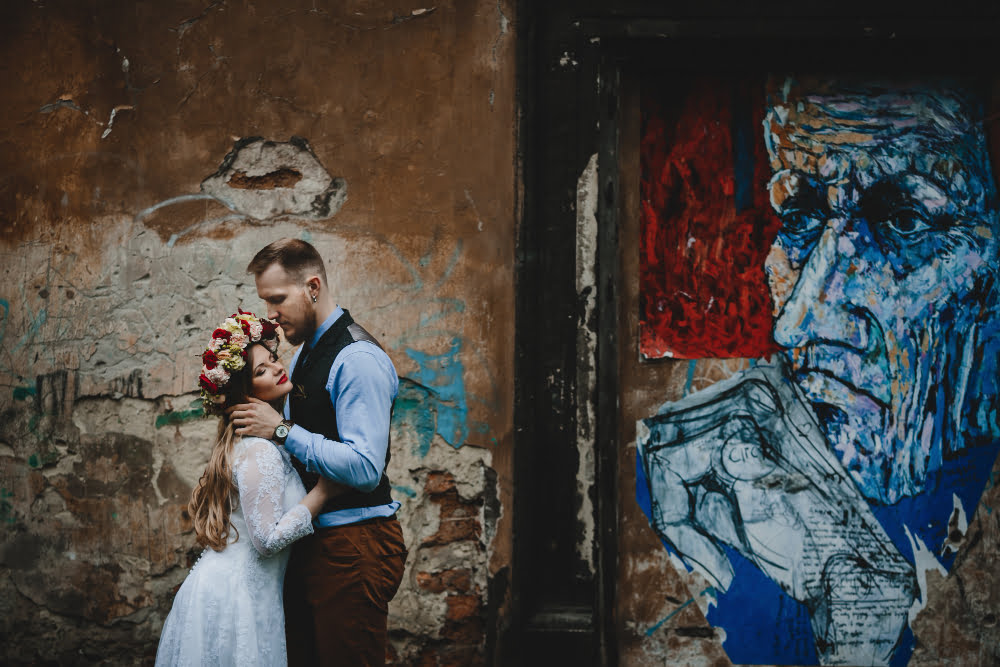 Alegeți un fundal urban pentru fotografiile de nuntă pentru a crea un contrast intrigant între eleganța tradițională a unei nunți și energia brută a mediului urban. Explorați cartiere istorice, ziduri de graffiti, străzi înguste sau clădiri abandonate pentru a captura imagini pline de caracter și povești. Această abordare adaugă un strat de originalitate și modernitate albumului de nuntă, oferind o amintire vizuală a locului și timpului în care dragostea voastră a fost celebrată.